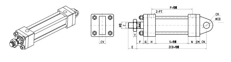 標準HOB+CA型 單耳型外形安裝尺寸圖